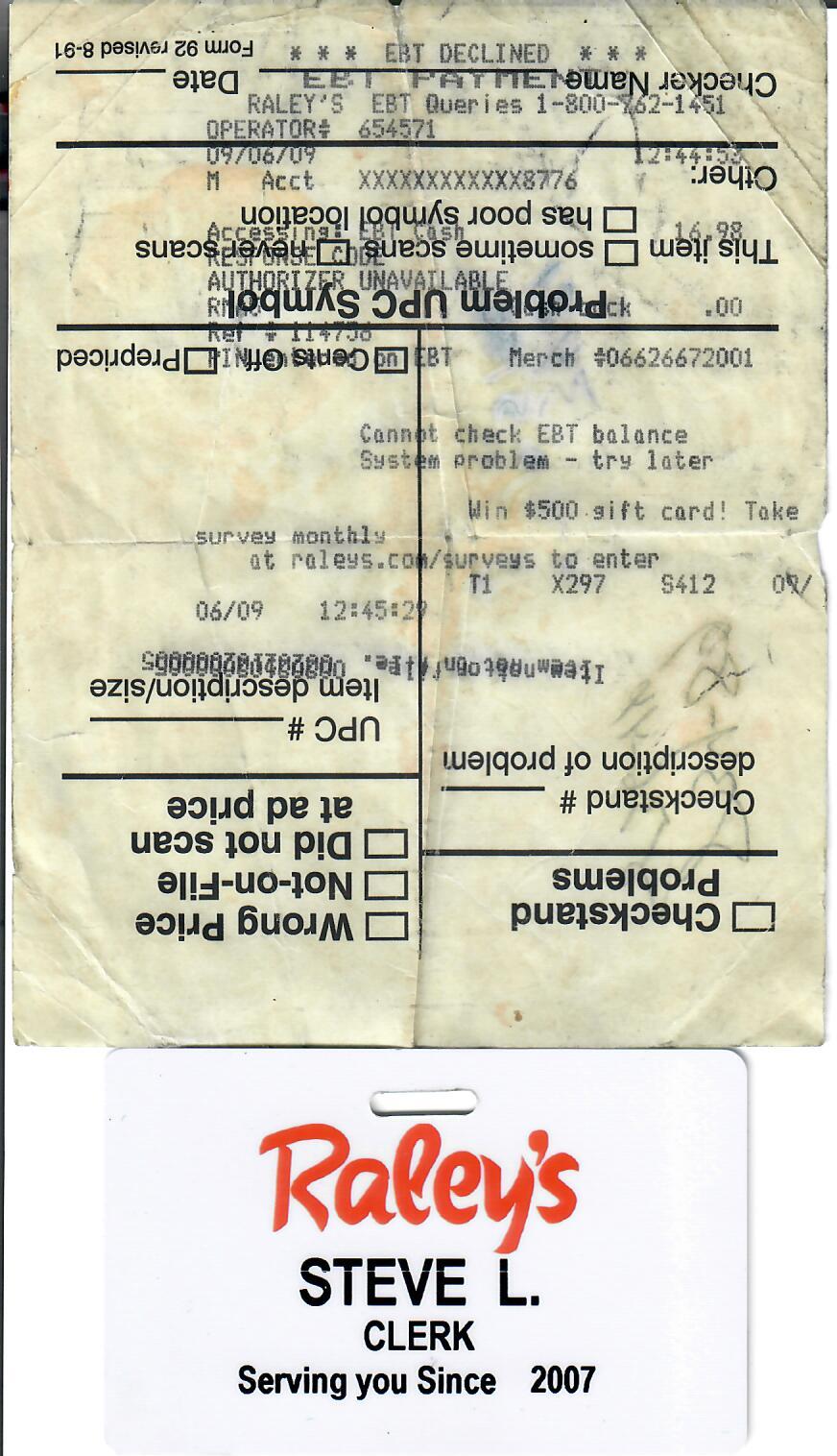 STEVE... had recently worked for Raley's Supermarket store 412 in Granite Bay California, and today lives  WITH HIS TWO CHILDREN and IS VERY CONCERNED ABOUT THE SPIRITUAL GAP.... THAT NOW HINDERS HUMANITY!!!  FOR STEVE IS QUIT AWARE..........