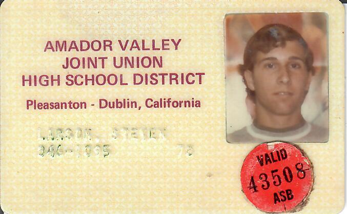 STEVEN PATRICK LARSON... WAS BORN ON APRIL 18th 1959... LAKEWOOD-GENERAL HOSPITAL AND RESIDED AT 3658 KAREN AVE; LONG BEACH, CALIFORNIA.  THE SECOND OF FOUR BOYS, HIS CHILDHOOD WAS THAT OF A GOOD URBAN UPBRINGING.  HE GRADUATED FROM AMADOR VALLEY HIGH SCHOOL CLASS OF...1978 AND STARTED IN THE GROCERY BUSINESS AS A utility clerk.... for Albertsons, March of 1975... 1851 Aborn Road,